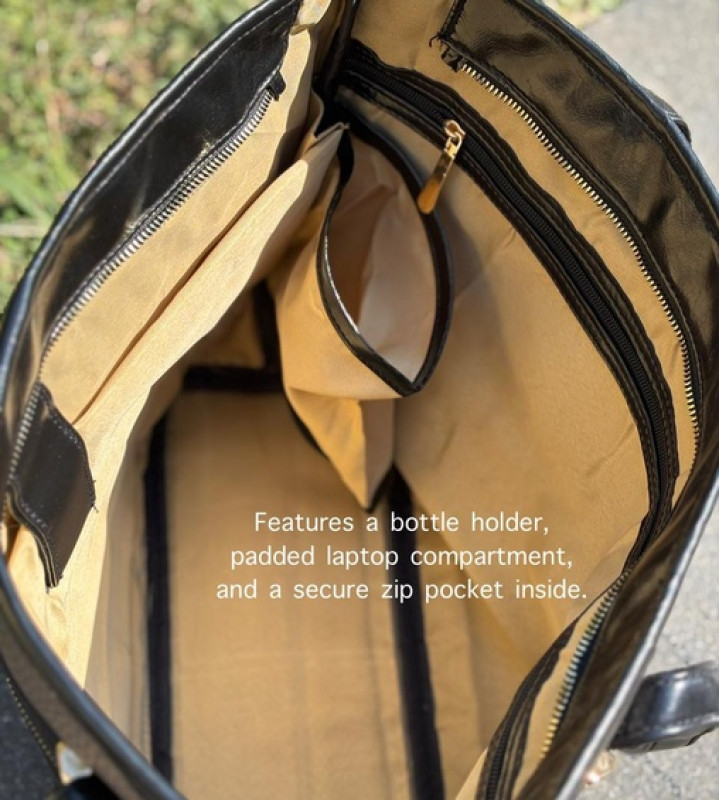 Clara is designed to carry your workday with ease. It features a foam-cushioned laptop compartment to keep your device protected, along with a built-in bottle holder, spacious zip compartment inside, and a convenient back zip for quick-access essentials. Dimensions : L 18” H 11” B 5”
