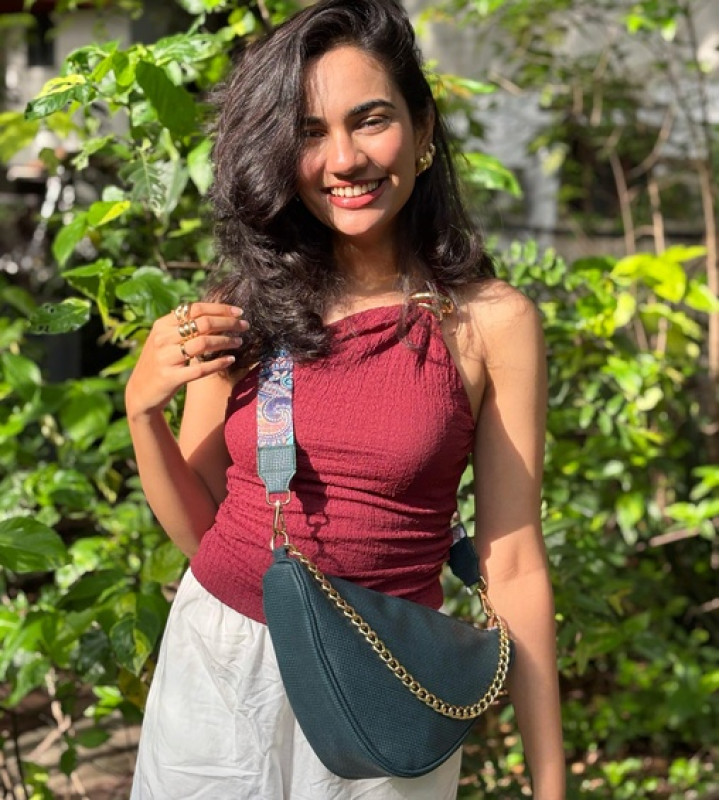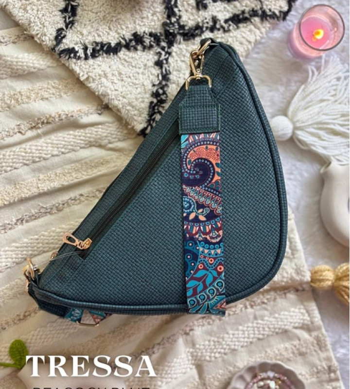 Tressa Crossbody ✨ Sleek. Chic. One of a kind. With its unique triangle shape, detachable straps & stunning golden chain detail — Tressa is all about turning heads. Use it as a shoulder bag or a sling, your pick! Available in 6 gorgeous shades .