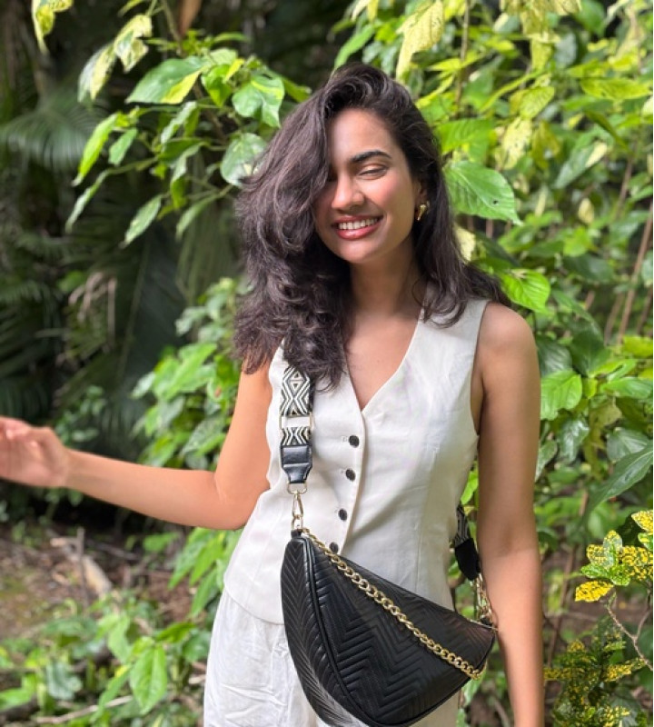 Tressa Crossbody ✨ Sleek. Chic. One of a kind. With its unique triangle shape, detachable straps & stunning golden chain detail — Tressa is all about turning heads. Use it as a shoulder bag or a sling, your pick! Available in 6 gorgeous shades .