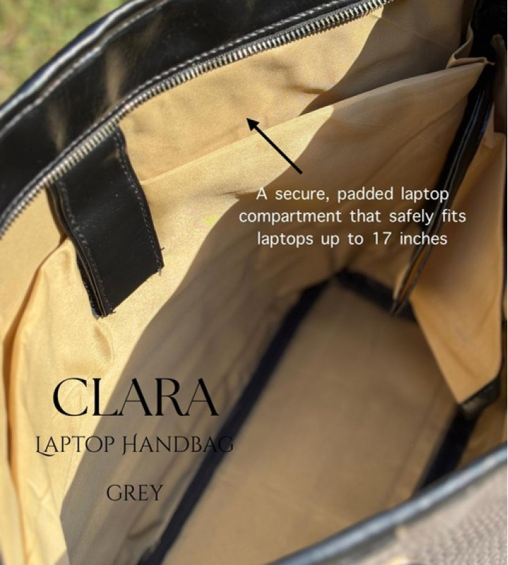 Clara is designed to carry your workday with ease. It features a foam-cushioned laptop compartment to keep your device protected, along with a built-in bottle holder, spacious zip compartment inside, and a convenient back zip for quick-access essentials. Dimensions : L 18” H 11” B 5”