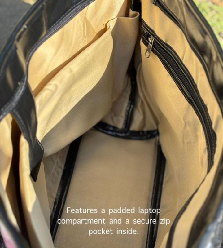 The Rosalind Tote Bag blends floral charm with everyday functionality. It features a secure laptop compartment to keep your device protected, along with an inner zip compartment for organised storage. Finished with a back zip pocket for easy-access essentials, Rosalind is perfect for workdays that call for a little softness. Dimensions : L 18” H 11” B 4.5”